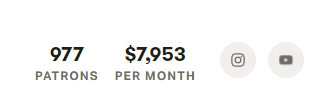 While Cassie’s Patreon page above doesn’t show her exact monthly income, there’s a way to get a rough estimate. Going back to Ashleigh’s page, if you divide the number of monthly patrons into the amount she makes each month, you come to about $8.18 per person. Ashley has a membership tier of $3, $8, $10, $20, and even $100. The $100 one is actually sold out. So, at $8.18, it shows she has a pretty committed and engaged audience.