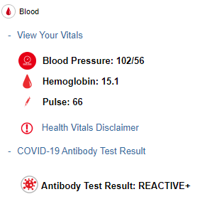 The Red Cross screens your blood before giving it to anybody, so if you have a disease or some kind of health problem, they’ll tell you. In my last donation, the Red Cross informed me that I had developed reactive+ Covid-19 antibodies. This means, according to the Red Cross anti-body test results page, that, “Antibody levels were detected at levels high enough that your plasma may be used as convalescent plasma.”
