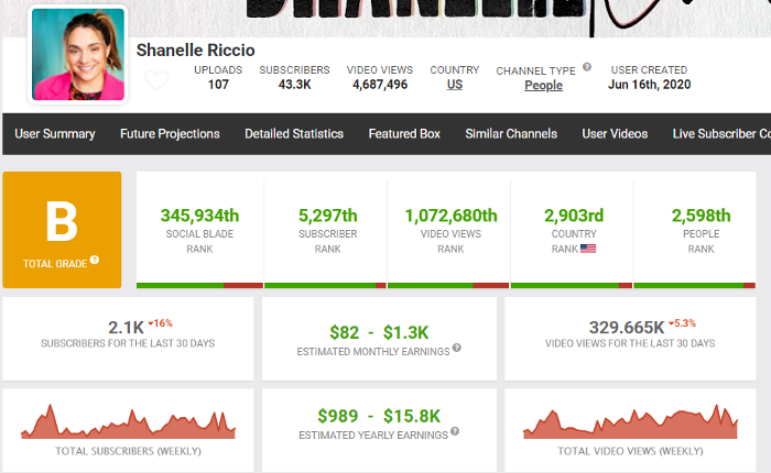But what accounts for the lower revenue and subscription numbers compared to Ashleigh Burton and Cassie of Popcorn in Bed? I suspect this may simply boil down to fewer postings. Shanelle’s updates average out to almost once a week for the last two years. Ashleigh has uploaded 223 videos in about the same time span. While Cassie has done 210 in almost 18 months. YouTube really does reward higher consistency, and this is also the case with reaction videos. This is a niche with a lot of increasing competition. So if you’re not posting heavily, it’s going to be harder to hold onto and build an audience.