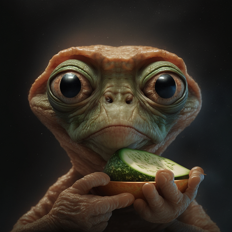 Here to sex you up. “E.T. with a cucumber.” Made with Midjourney AI