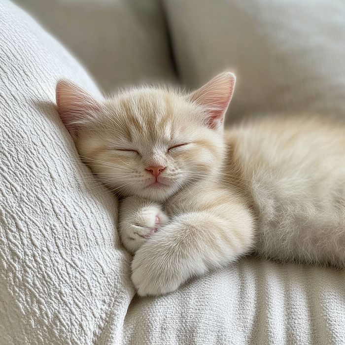 Oh, to be a sleeping kitten. Source: Midjourney